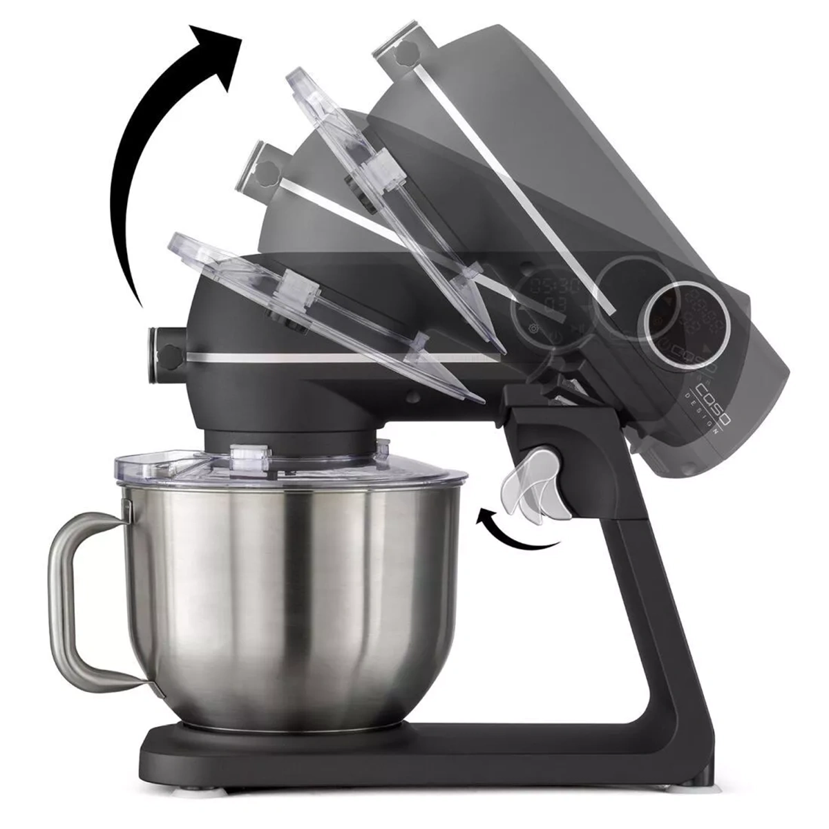 Die Küchenmaschine mit 6-Liter-Edelstahlschüssel ist dein leistungsstarker Partner beim Backen und Kochen. Mit ihrem robusten Alu-Guss-Gehäuse in Schwarz, einer Leistung von 1800 Watt und dem professionellen Planetenrührwerk liefert sie perfekte Ergebnisse – egal ob Teig kneten, Sahne schlagen oder Zutaten mixen.