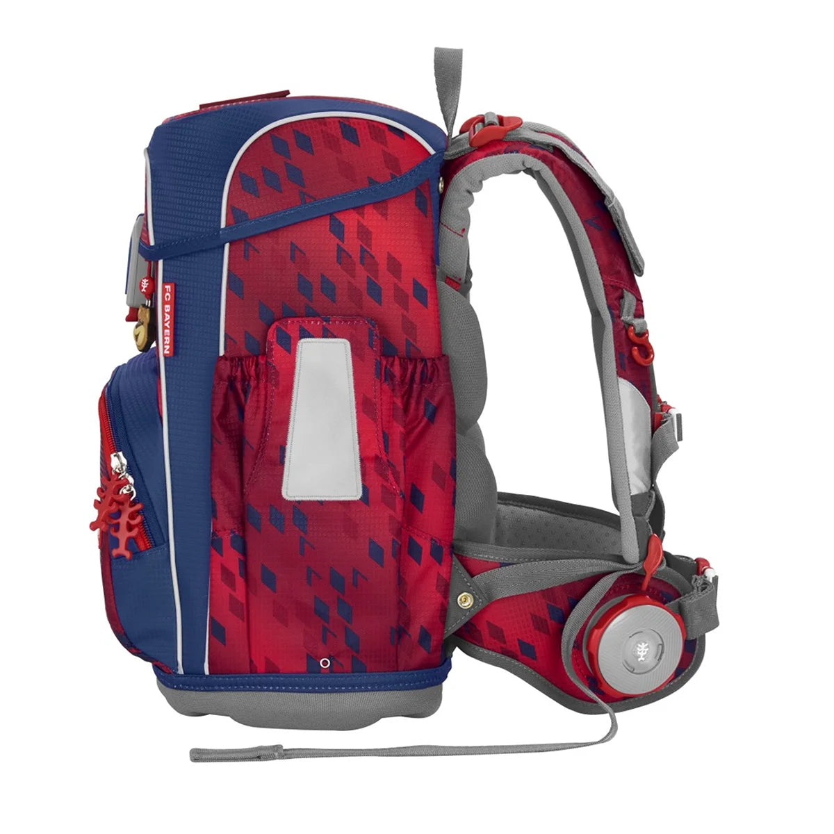 Praktisch – Fronttasche mit Auslauföse & 2 erweiterbare Seitentaschen für Trinkflasche & Brotzeitbox
