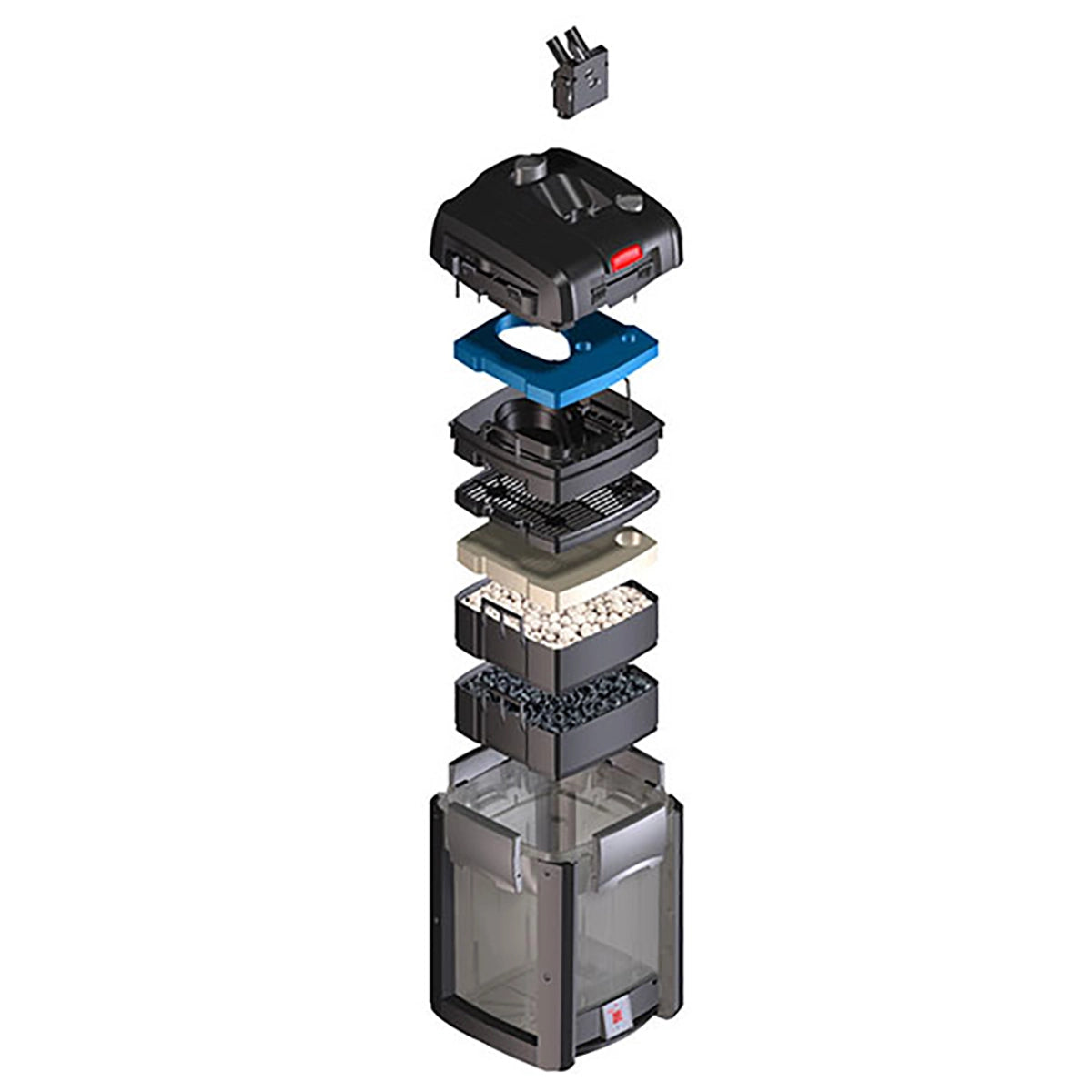 Komplett ausgestattet: Mit original EHEIM Filtermedien und Installationszubehör (Ansaugrohr, Düsenrohr, Auslaufbogen, Schlauch).